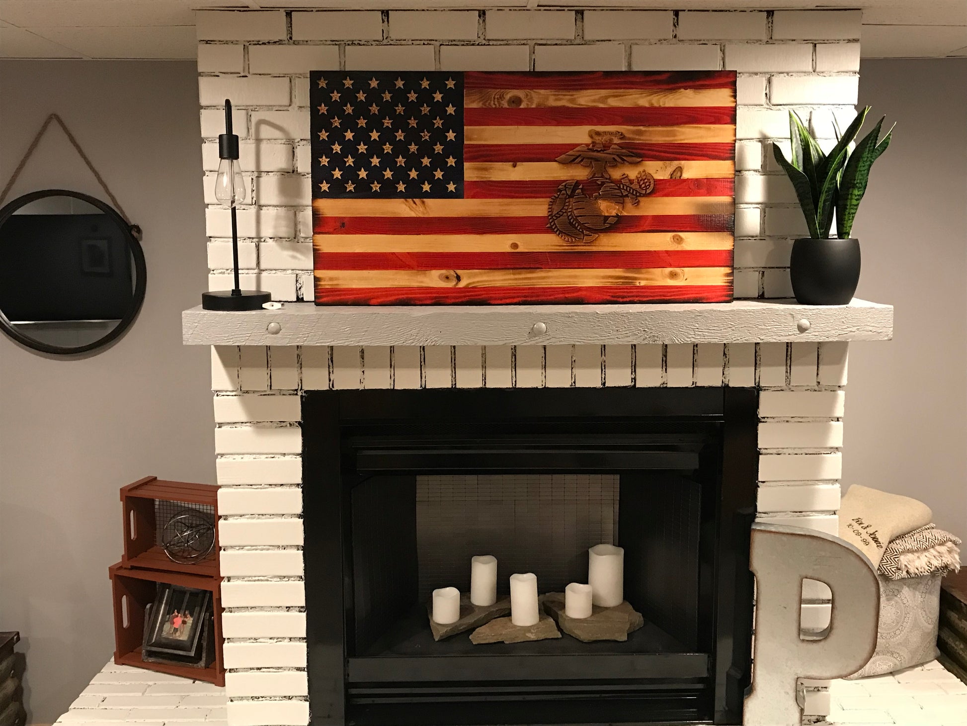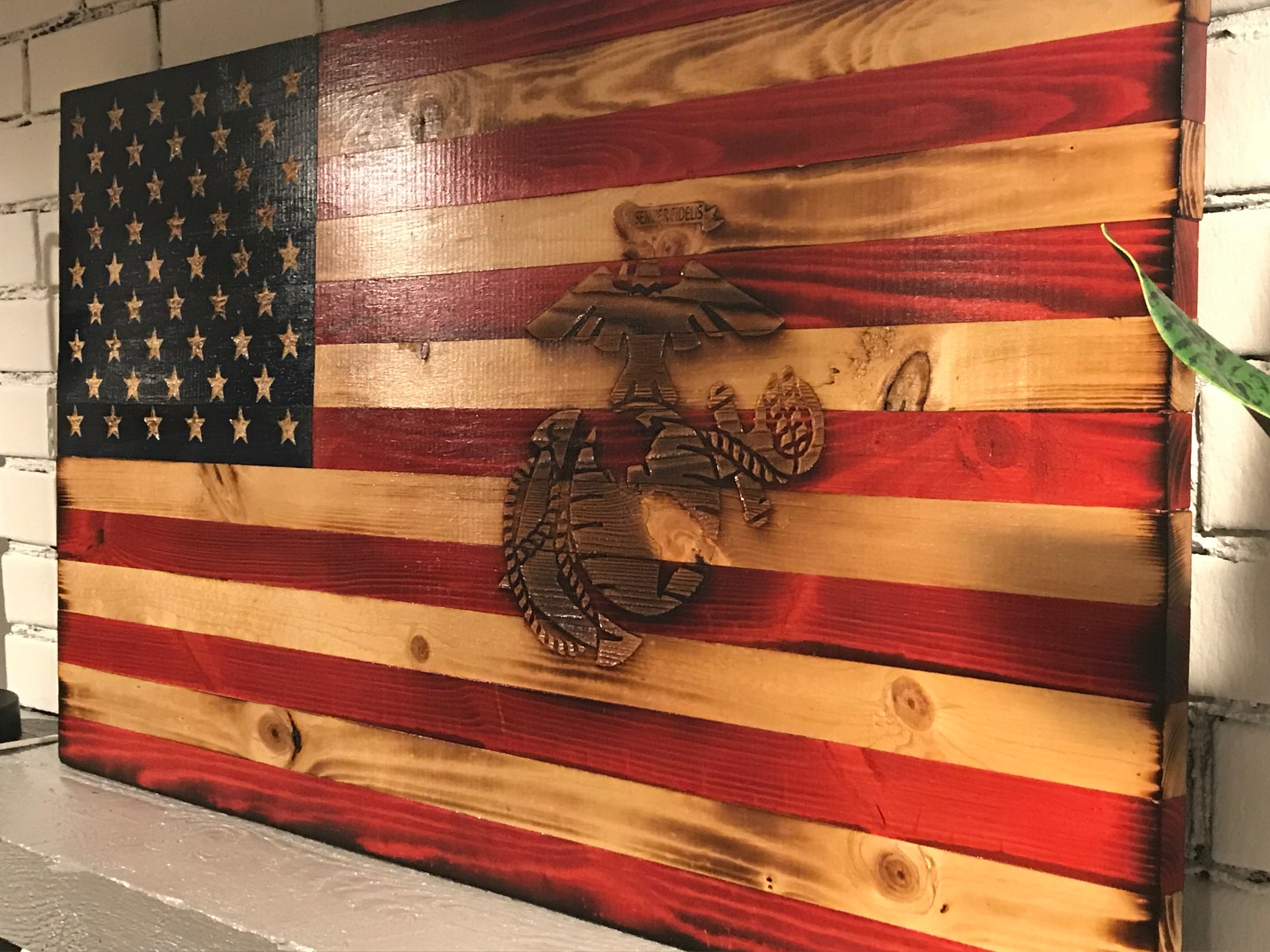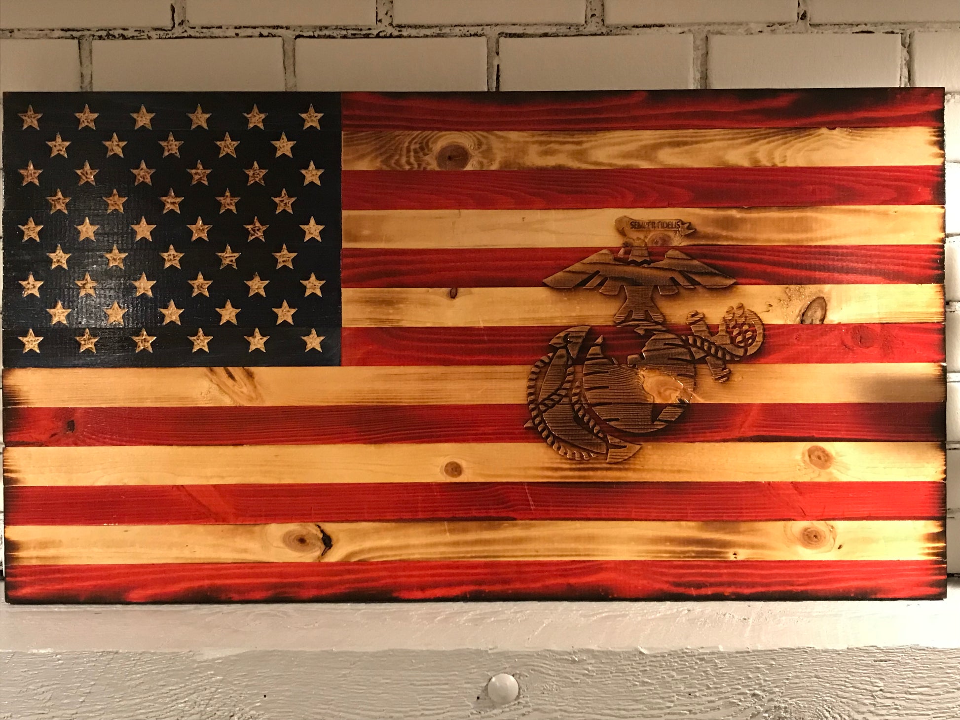 Special American Wooden Flag Marine Corps Emblem Charred Rustic Decor