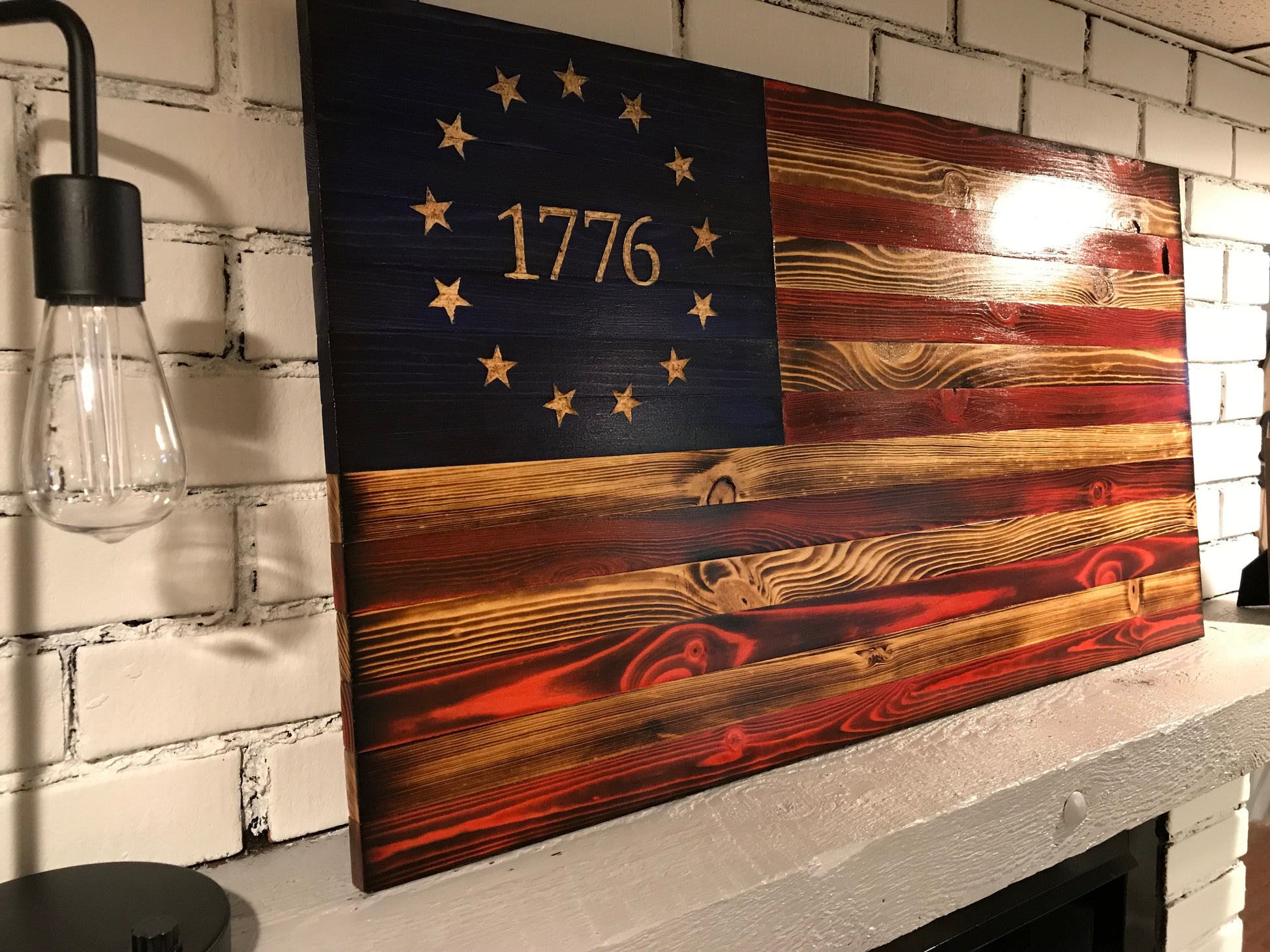 Betsy Ross 1776 The Natural American Wooden Charred Flag