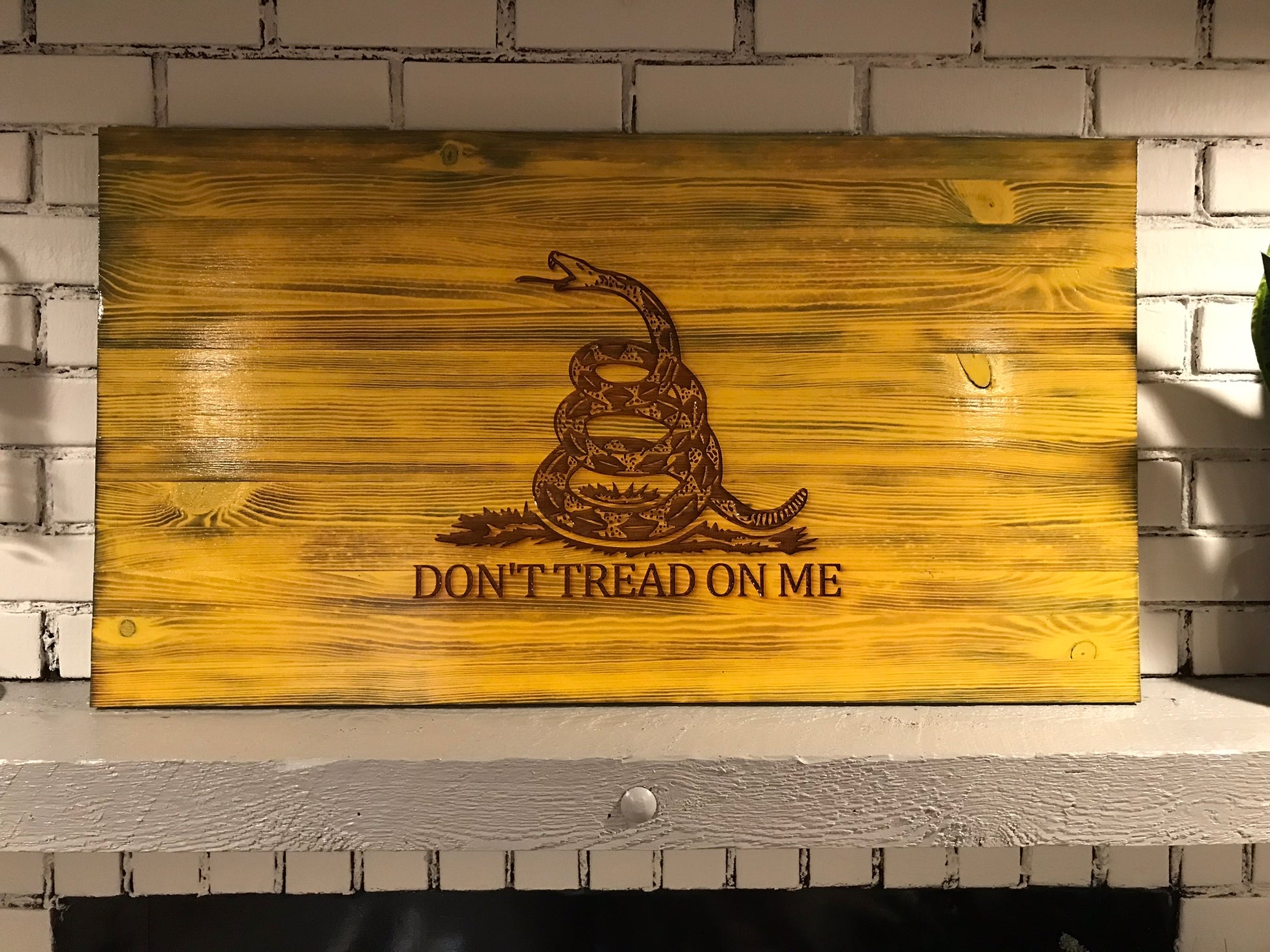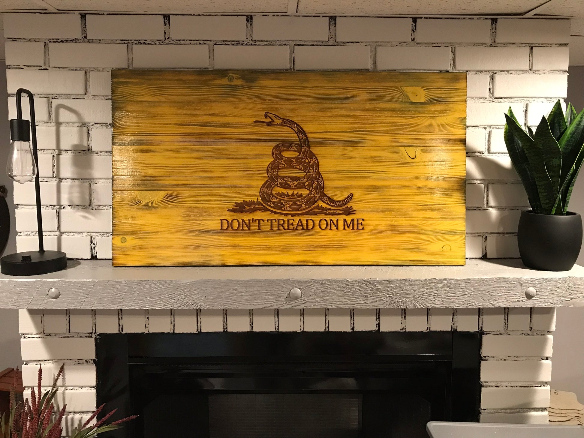 Look no further If you're looking to display some American spirit in your home with this rustic "Don't Tread On Me" American flag wall art!