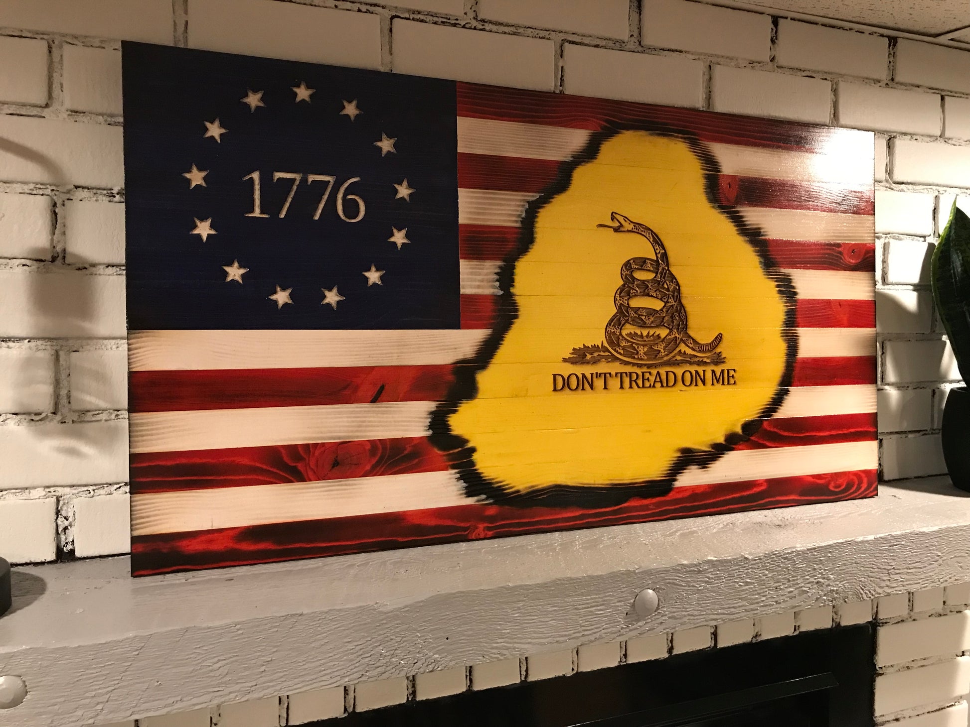 The Original Rustic Betsy Ross /Gadsden Don't Tread on Me Charred